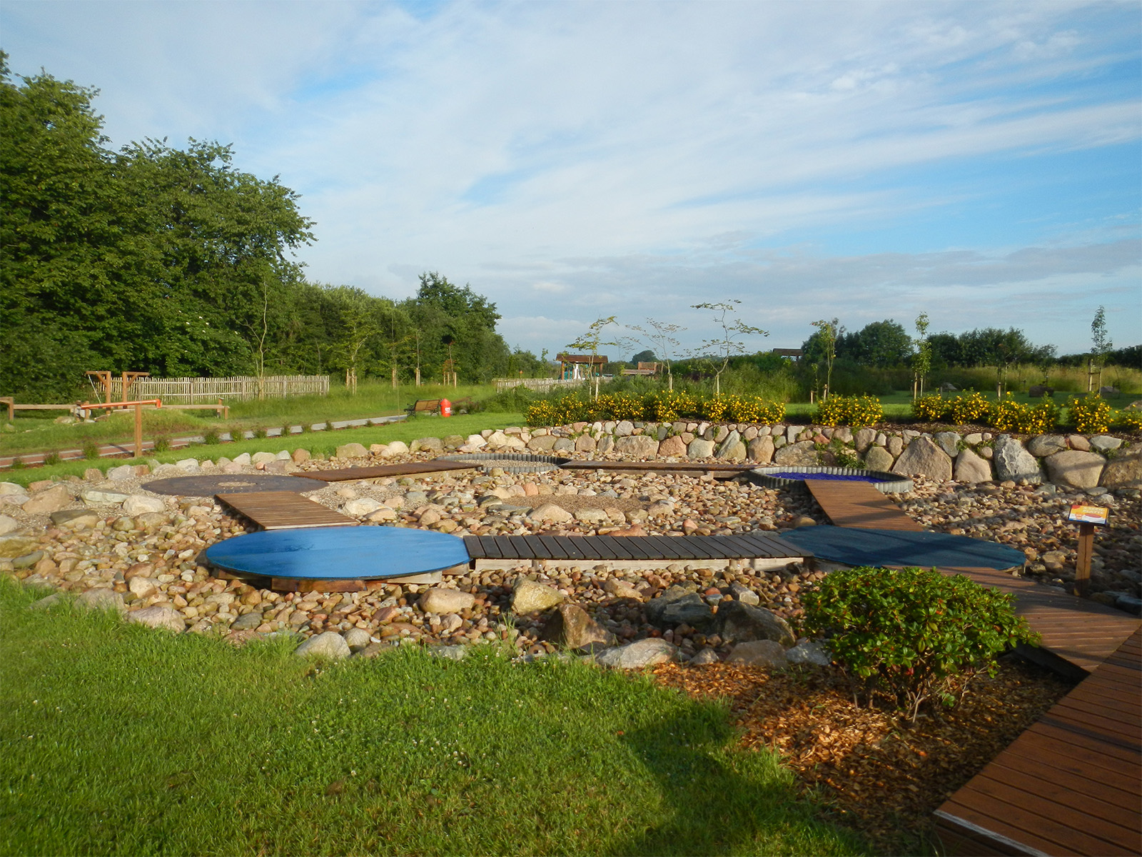 Ausgelassenes Platschen durch Moor oder nassen Torf und kurz darauf behutsames Tasten über Glasscherben – auf dem 2,5 ha großen Gelände sind Abwechslung und Spaß garantiert!