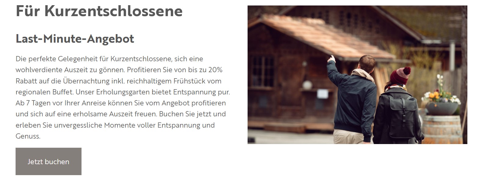 Lassen Sie sich von unserem Restaurantteam kulinarisch verwöhnen und geniessen Sie die Köstlichkeiten aus unserer Region. Unser Hotelteam sorgt für Ihre Erholung im und ums Haus. Verbringen Sie ein paar Tage in einem unserer individuell gestalteten Zimmern und lassen Sie sich von der lieblichen Natur rund um unser Haus verzaubern.